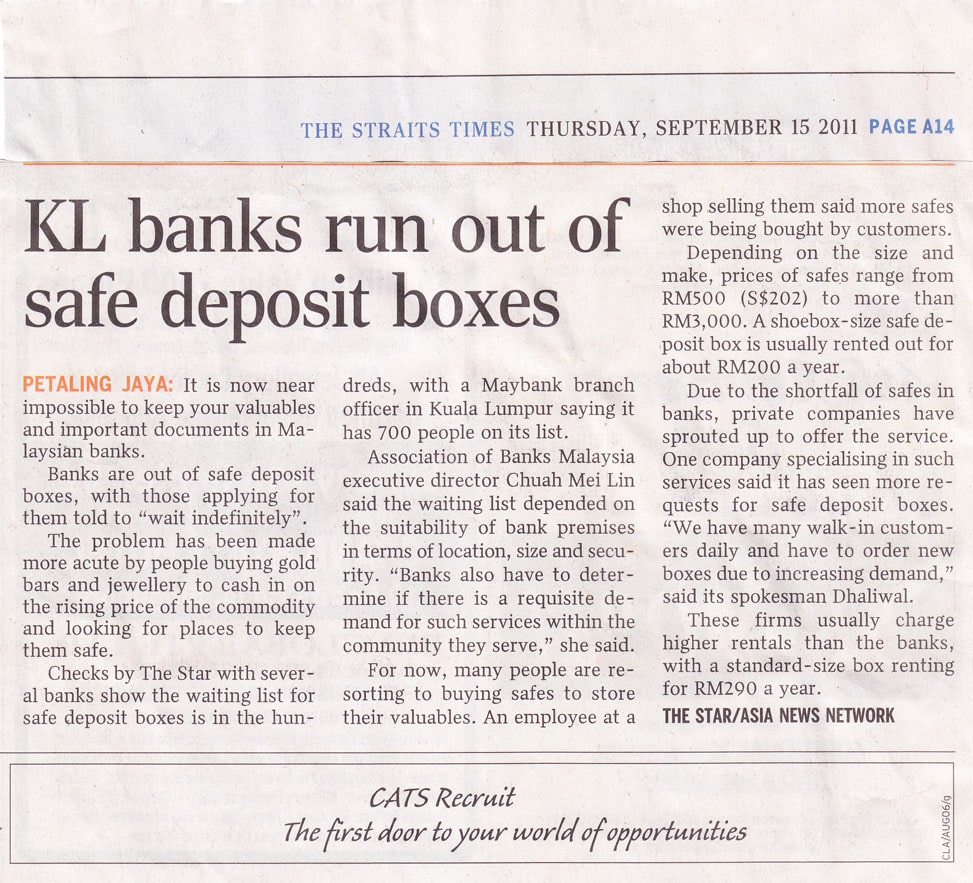 Bank di KL kekurangan Peti Simpanan Selamat