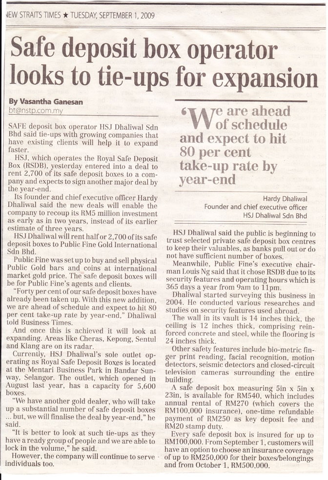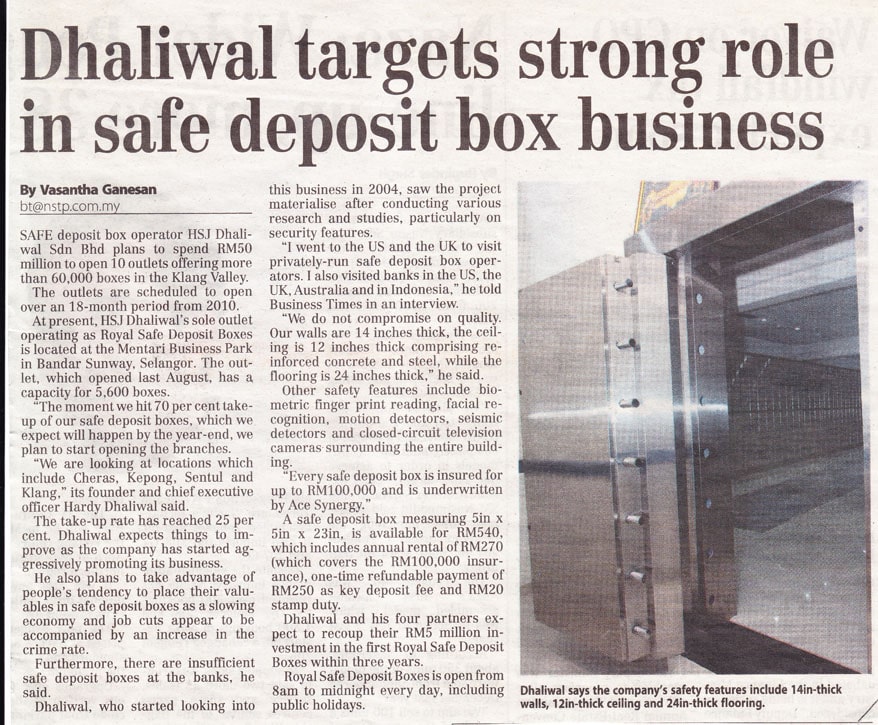 Operator Safe Deposit Box HSJ Dhaliwal mewujudkan 10 lagi cawangan