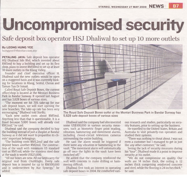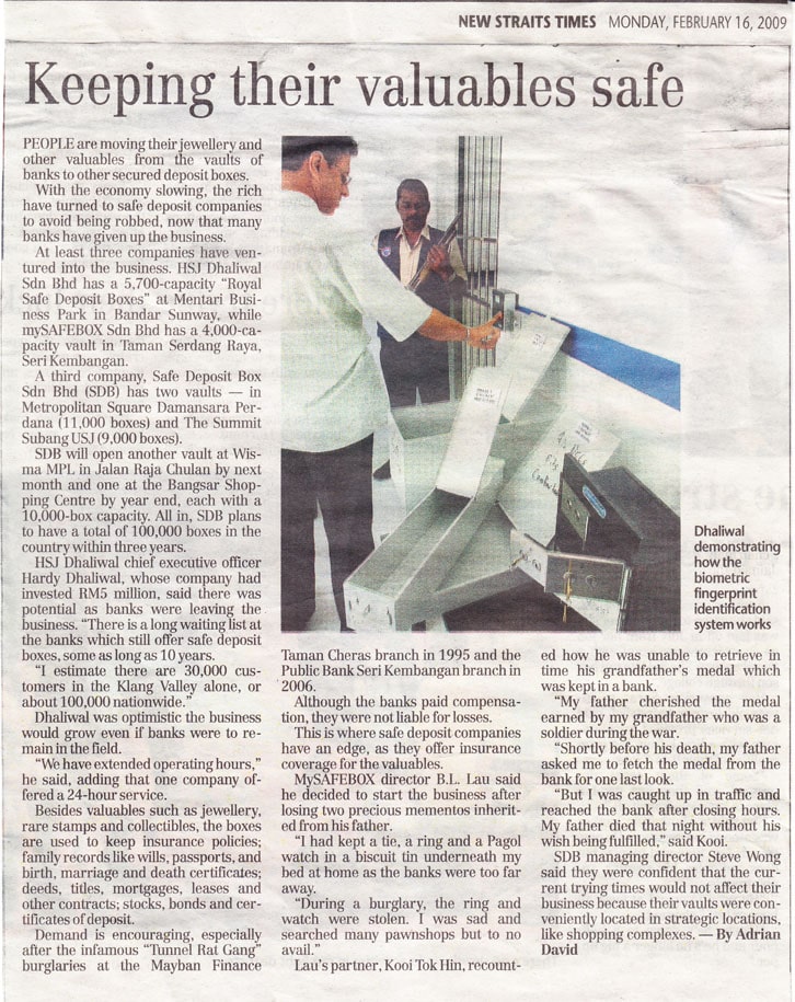Baca selanjutnya tentang HB Secured Vaults dari artikel akhbar dan majalah